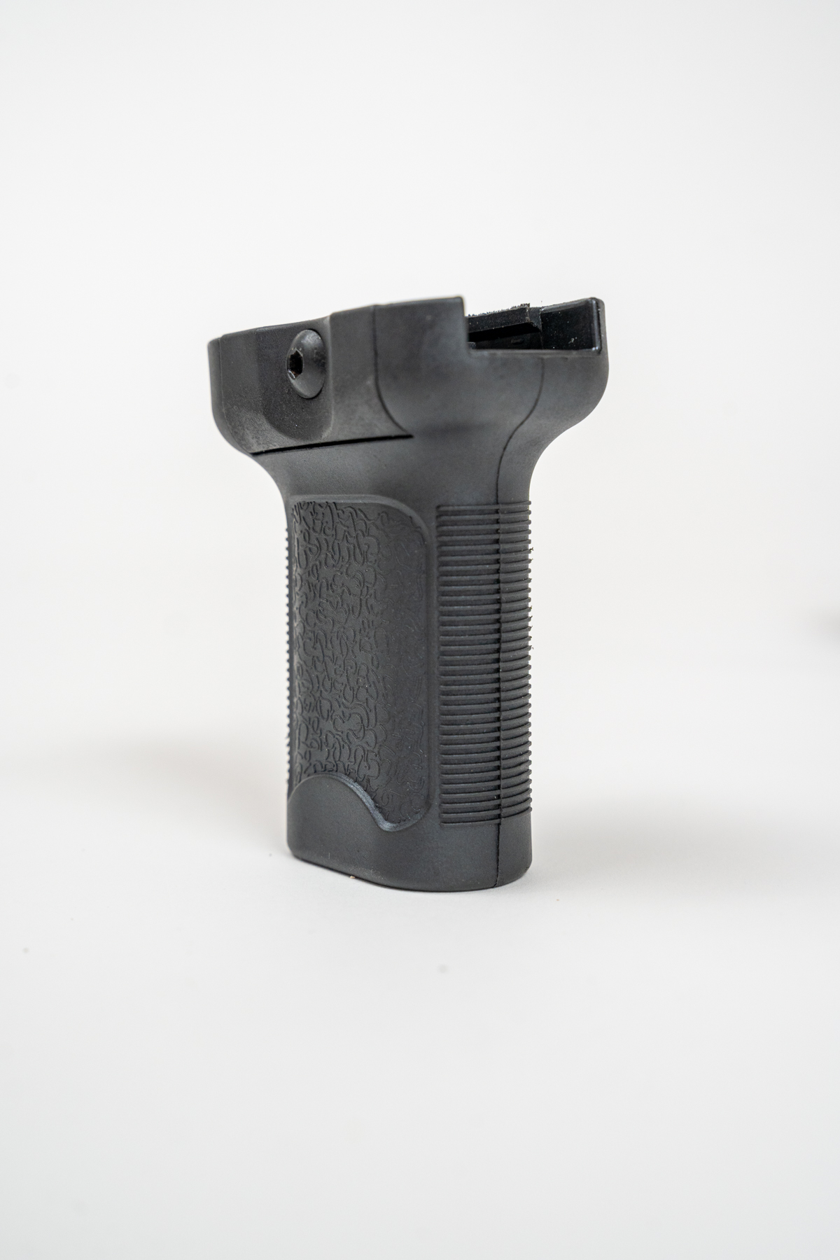 All mounting points can accommodate various attachments that enhance usability and performance. In this case, a lower grip has been added for easier handling, along with a flashlight mounted on the side. The aiming device can be easily positioned according to the shooter’s size and preference.