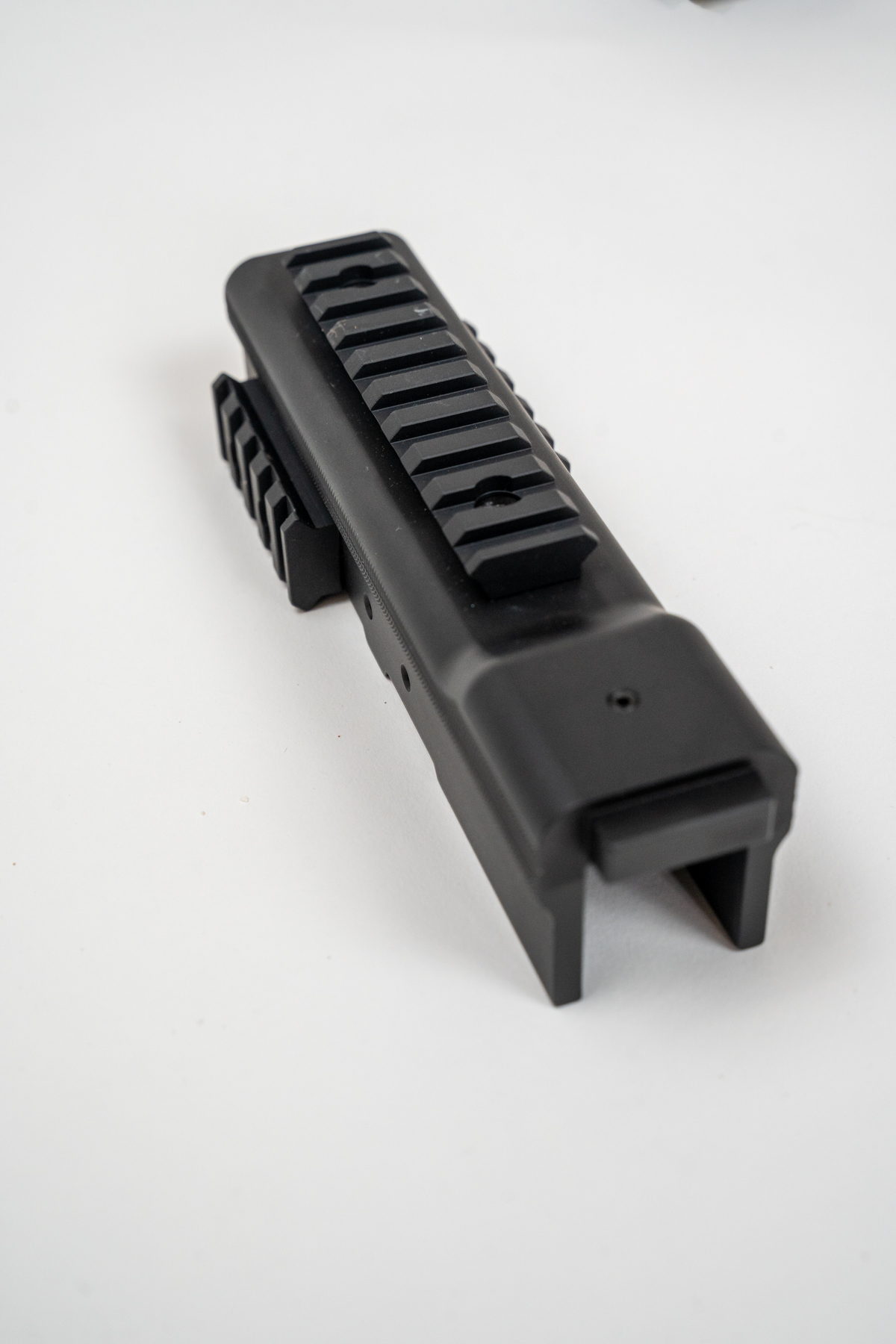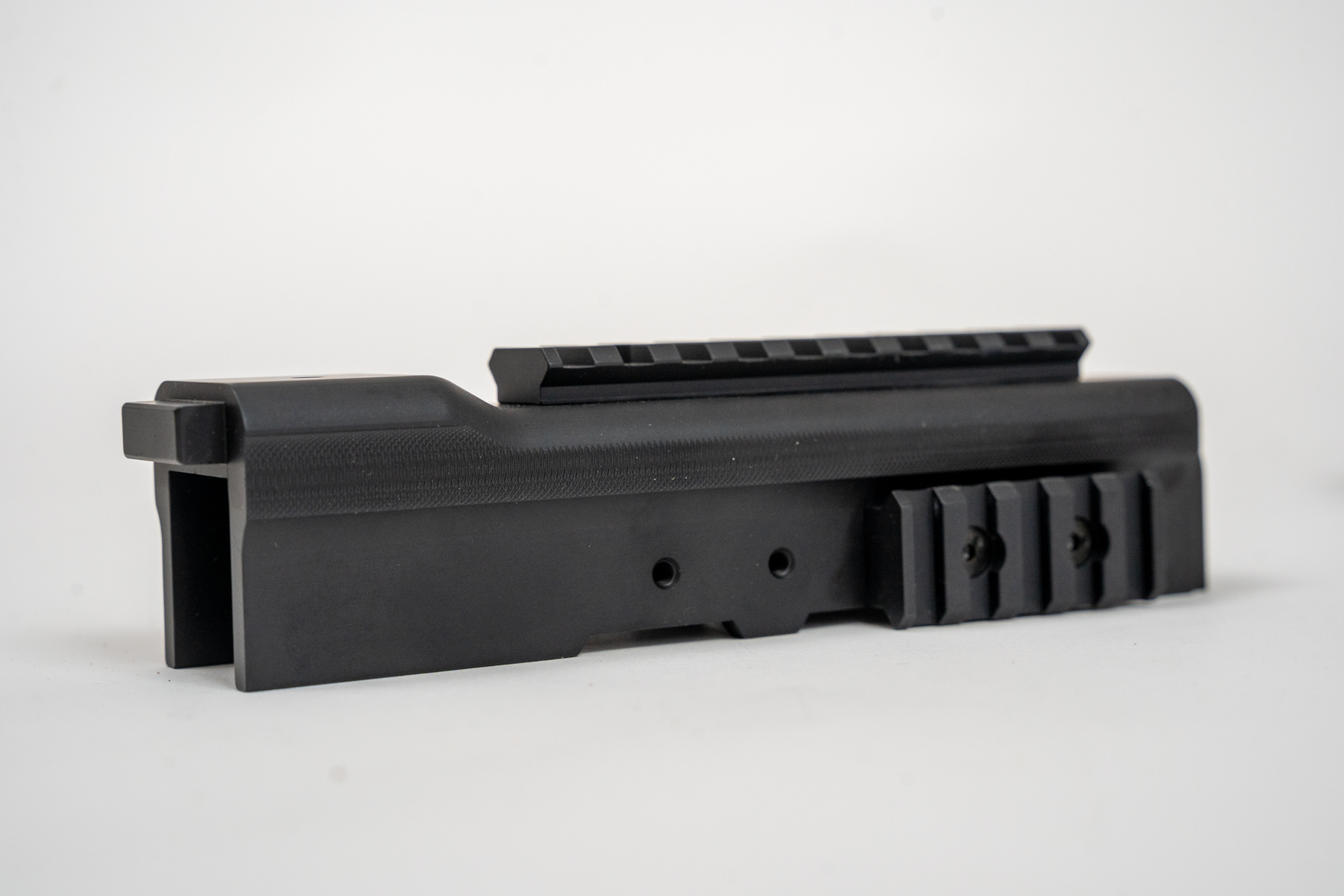 The cover is made of machined aluminum and comes with a pre-installed Picatinny mount (MIL-STD-1913). A mechanical sight is attached to the mount, replacing the previously removed one. This is used as a backup in case the aiming device fails, allowing for accurate targeting.